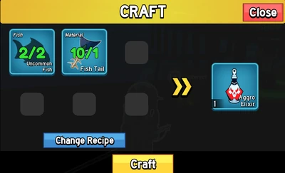 The Aggro Elixir can be crafted at the Campfire for 2 Uncommon fishes and