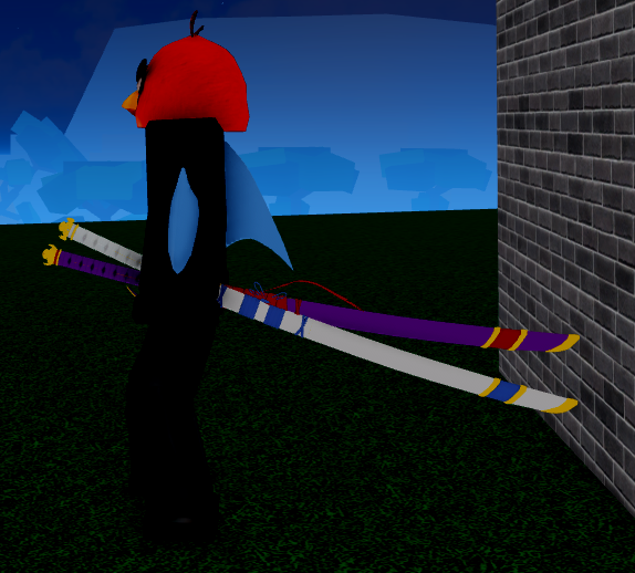 - When the player is holding Cursed Dual Katana, it is noticeable that Yama's handle has two small demonic wings flapping around, whereas Tushita has two small angelical wings flapping around, however, the animation is easily missable.