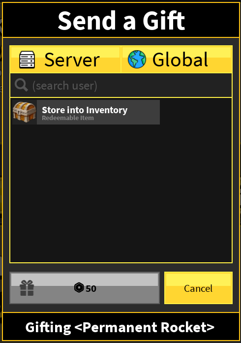 . Gifting was updated in Update 24 and the player can now gift to people outside of their server. The player can also now add messages to their gifts. Another feature added was a new menu to receive gifts in.