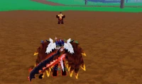 The user spins around in a circle while moving towards the cursor, slashing the sword around them. When hitting an enemy, they get pulled in and receive continuous damage. When the move finishes, the player does a small horizontal slash, dealing knockback and damage to the enemies caught in by the attack.