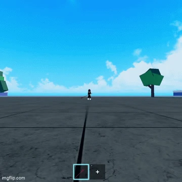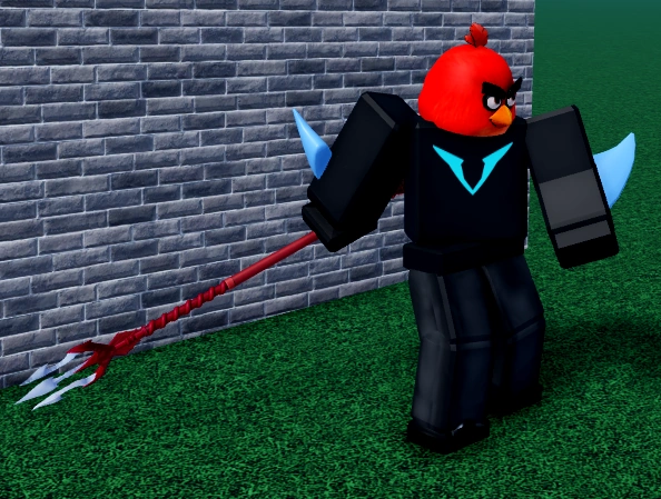 The user throws the trident in the direction of their cursor, which is connected to the user's right hand via a black rope. Upon hitting an enemy, the target is damaged and pulled towards the user. Upon hitting terrain, the user is pulled towards the trident. This move can be very deadly if used correctly. It acts similar to Spikey Trident's [X] Flying Trident Pull move but slower.