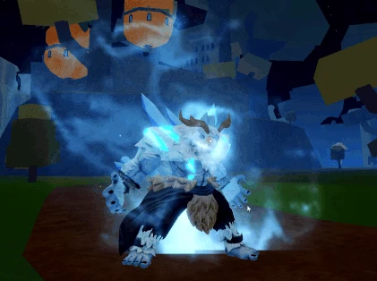 The user roars, causing ice spikes to pierce out of the ground, dealing damage and knockback to any nearby enemies, before transforming into an upright, huge Yeti with red, glowing eyes. The user gains the ability to walk on water, but loses the ability to use Fighting Styles, Swords and Guns.